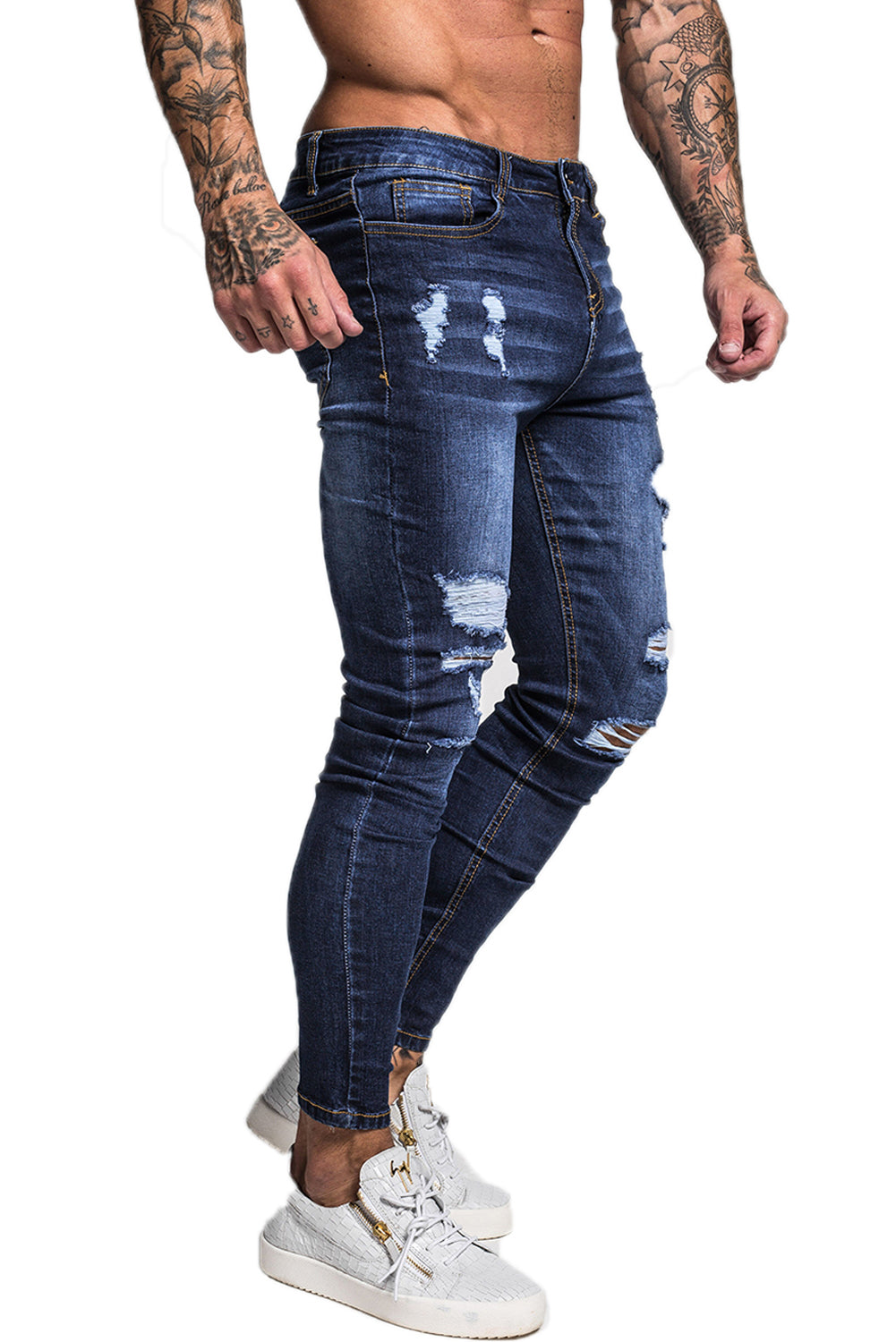 Dark Blue Ripped Stretch Jeans